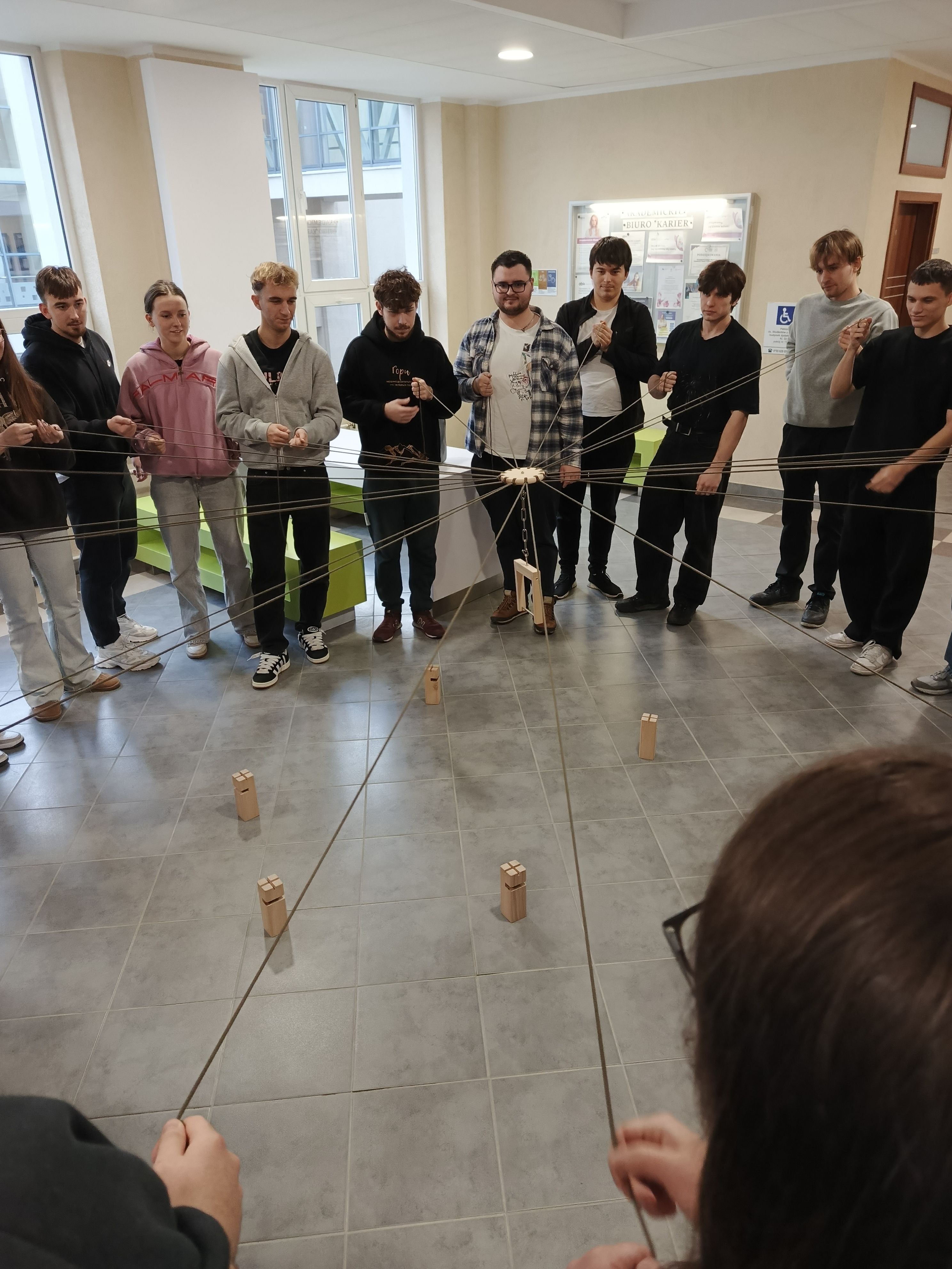 Centralnym punktem zajęć był dynamiczny warsztat „Wieża Liderów". Ćwiczenie to zostało specjalnie dobrane, aby rozwijać kompetencje kluczowe dla przyszłych specjalistów ds. logistyki: