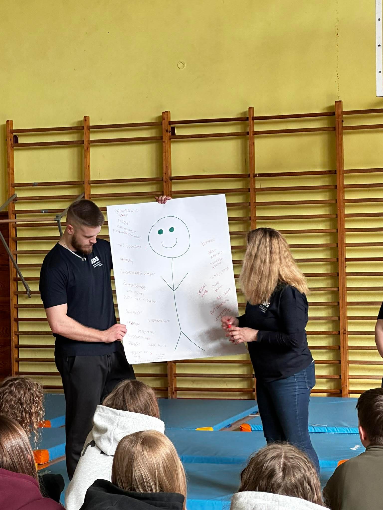 Zajęcia miały charakter warsztatowy i interaktywny – uczestnicy brali udział w ćwiczeniach grupowych, krótkich grach ruchowych oraz rozmowach na temat emocji towarzyszących treningom i zawodom sportowym. Warsztaty sprzyjały również rozwijaniu umiejętności współpracy, radzenia sobie z porażką oraz budowaniu pewności siebie.