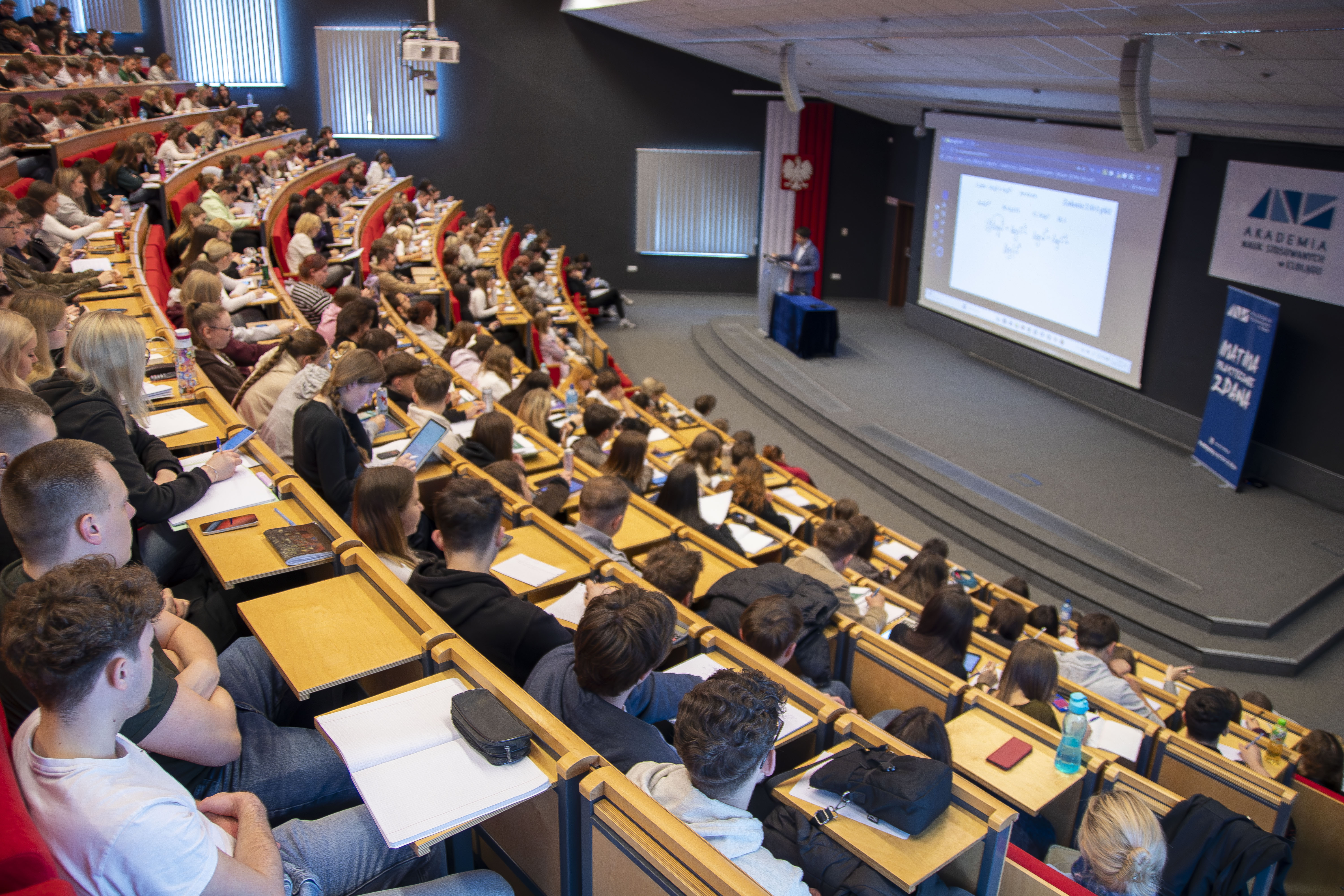 W tym roku Wielka Powtórka przed Maturą z Matematyki cieszyła się ogromnym zainteresowaniem. W trakcie czterech wydarzeń organizowanych przez Akademię Nauk Stosowanych w Elblągu w dniach 9, 10, 13 i 14 kwietnia blisko 1300 maturzystów z 20 szkół średnich tłumnie zjawiło się w murach naszej Uczelni, aby na niecały miesiąc przed maturą powtórzyć wszystkie informacje mogące przydać się na egzaminie maturalnym z matematyki.