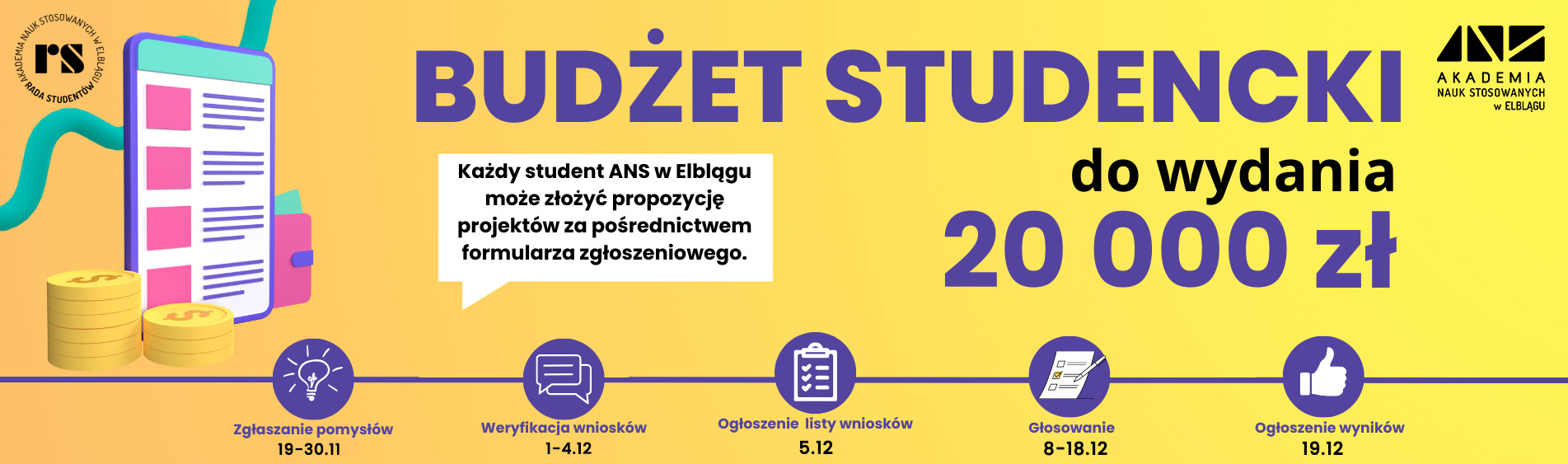 Masz pomysł na ciekawą inicjatywę? To właśnie ten moment, kiedy możesz otwarcie powiedzieć o swoich pomysłach. Twoja propozycja może zostać zrealizowana. Rektor ANS w Elblągu dr inż. Jarosław Niedojadło, prof. uczelni zatwierdził Budżet Studencki.