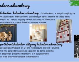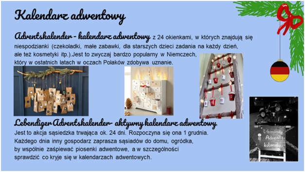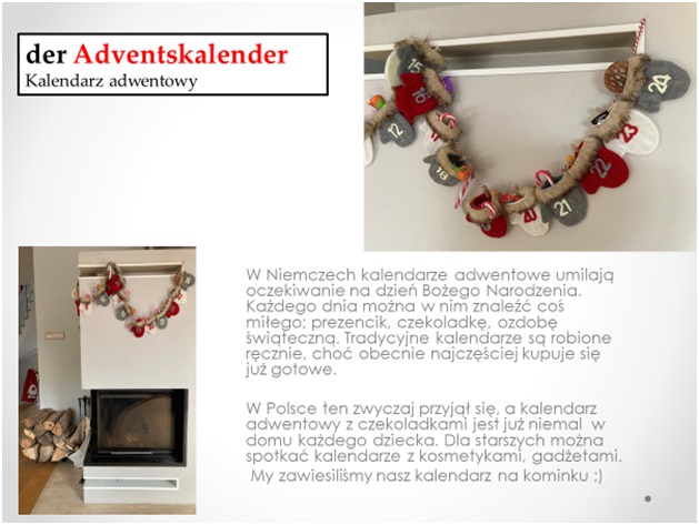 Z uwagi na pandemię tegoroczna – IX już edycja Konkursu na Kalendarz Adwentowy – odbyła się w zmienionej formule. Uczestnicy nadesłali na konkurs nie – jak dotychczas - własnoręcznie zrobione kalendarze adwentowe, lecz prezentacje multimedialne, w których przedstawili tradycje adwentowe i bożonarodzeniowe w Niemczech i w Polsce. Konkursowe jury było pod wielkim wrażeniem wiedzy Autorów oraz kreatywności przekazu, doceniło twórcze wysiłki uczestników przyznając - oprócz nagród - specjalne wyróżnienie SUPER PREZENTACJA.