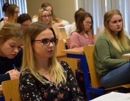 W murach Państwowej Wyższej Szkoły Zawodowej w Elblągu 15 listopada 2019 roku obyło się szkolenie zatytułowane „Karta Oceny Logopedycznej Dziecka KOLD - test do diagnozy dzieci w wieku od 1 miesiąca do ukończenia 9 roku życia. Ocena prawidłowego i zaburzonego rozwoju mowy dziecka”. Warsztaty poprowadziła dr Joanna Gruba, autorka jednego z pierwszych testów logopedycznych w Polsce. Udział w przedsięwzięciu wzięli studenci III roku logopedii oraz słuchacze studiów podyplomowych. Każdy uczestnik otrzymał bogate materiały szkoleniowe oraz - na sam - koniec certyfikat potwierdzający jego uczestnictwo w wydarzeniu i uprawniający go do korzystania z przedstawianej metody. Dzięki temu młodzi logopedzi będą mieli możliwość rozwoju swoich umiejętności w zakresie innowacyjnego rozwiązania, jakim jest KOLD.