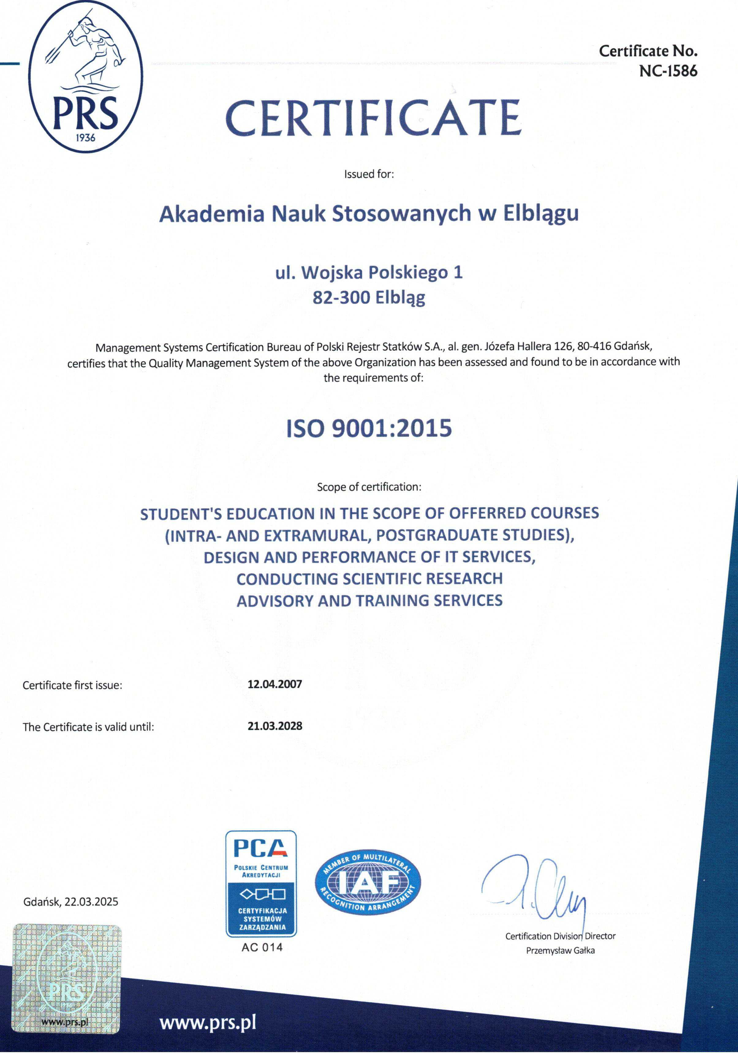 Akademia Nauk Stosowanych w Elblągu System Zarządzania Jakością wg normy ISO 9001 wdrożyła już w 2007 roku.