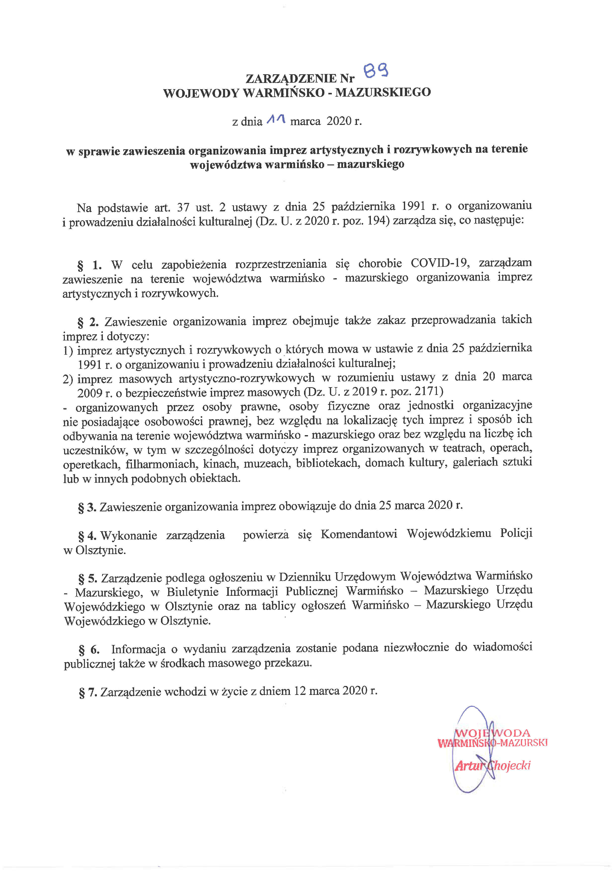 Zarządzenie Wojewody Warmińsko-Mazurskiego