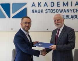 23 kwietnia 2026 roku Rektor Akademii Nauk Stosowanych w Elblągu dr inż. Jarosław Niedojadło, prof. uczelni, oraz w imieniu Dyrektora Zespołu Opieki Zdrowotnej w Nidzicy mgra Pawła Szulca - Zastępca Dyrektora ds. administracyjnych ZOZ w Nidzicy mgr Radosław Tkaczyk, podpisali porozumienie o współpracy w zakresie kształcenia praktycznego studentów na kierunku Pielęgniarstwo, studia pierwszego stopnia prowadzonym przez Akademię Nauk Stosowanych w Elblągu.
